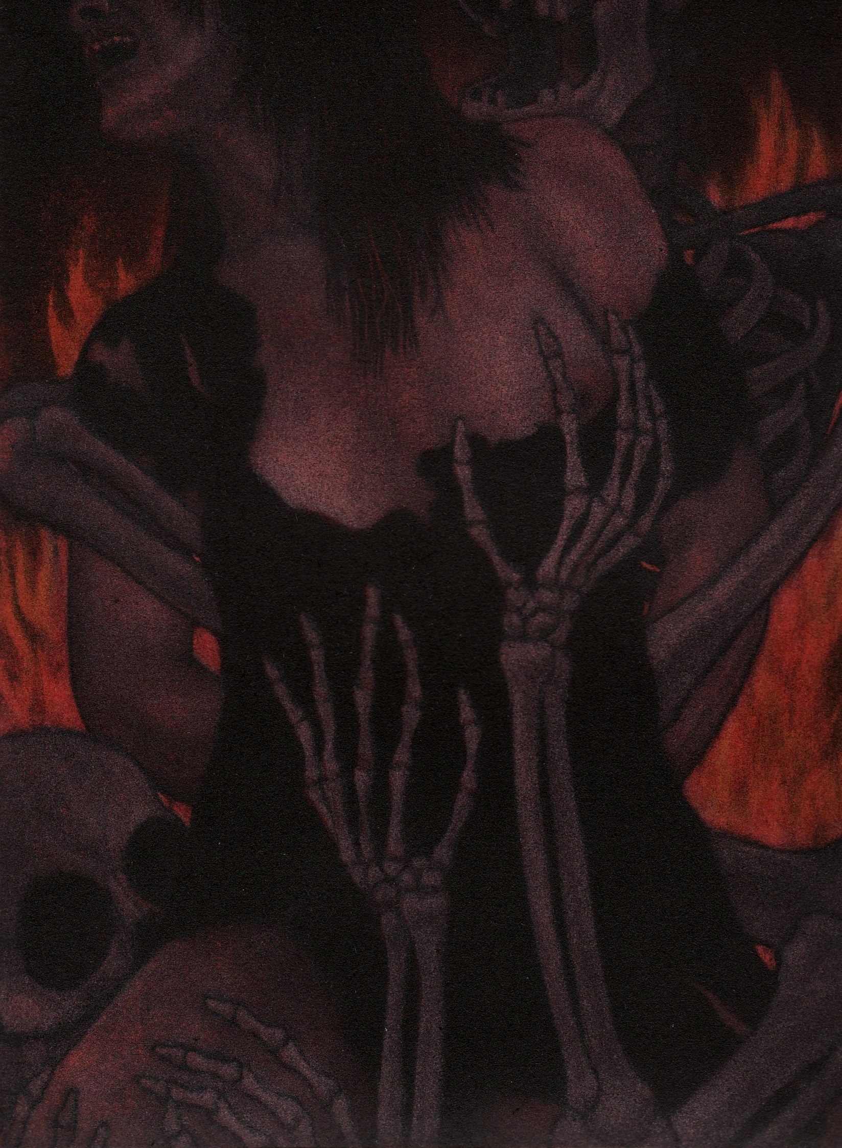 Passion IV; color mezzotint chine collé; 6" x 4".